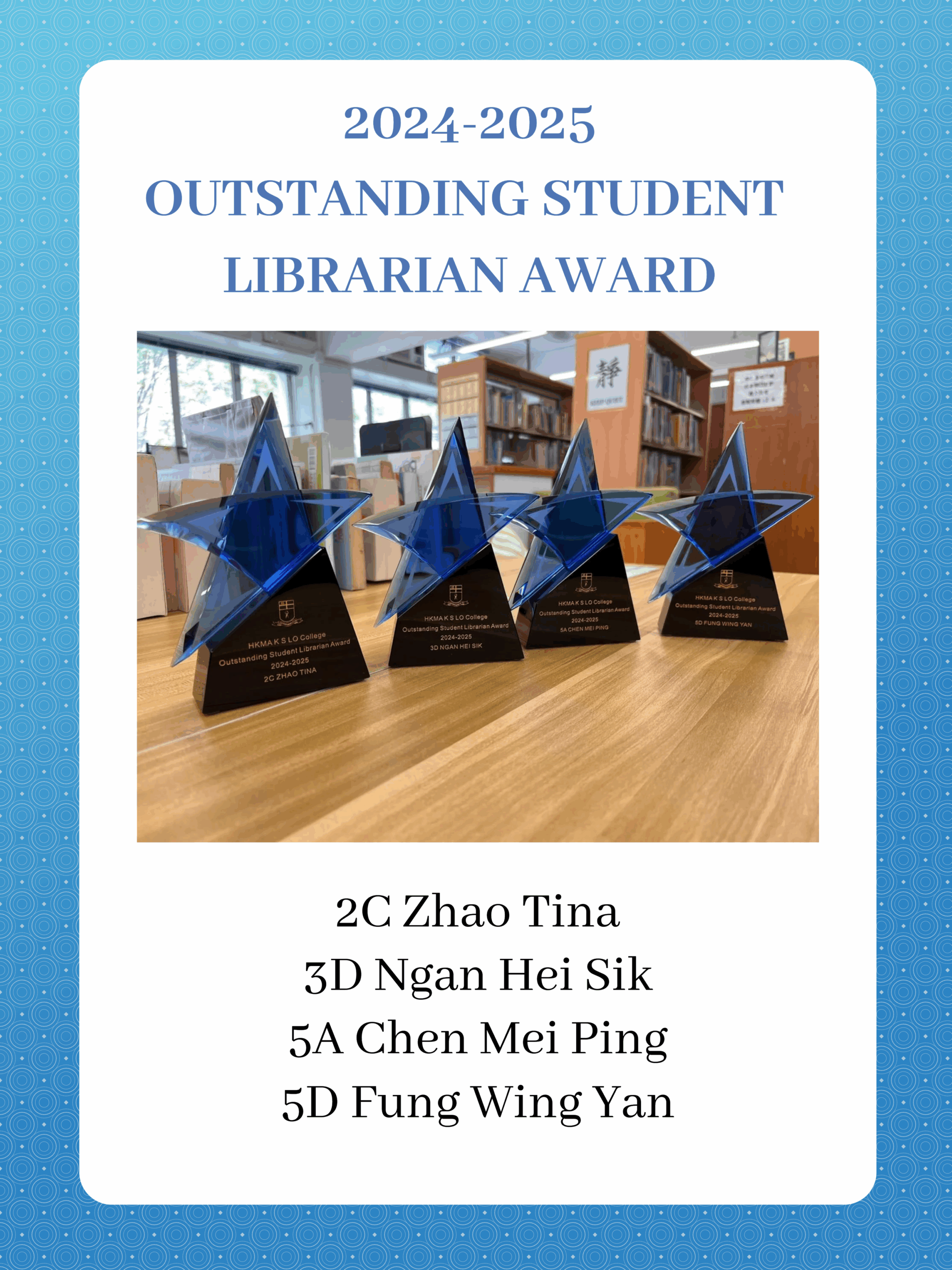 招募2022-2023年度圖書館管理員 發佈日期: 2022 年 07 月 28 日 作者: kslolib 回覆 有興趣成為圖書館管理員的中一或中二級同學可於8月19日或之前到圖書館索取申請表格及交回。 而準中一同學可以在9月16日或之前到圖書館索取申請表格及交回。